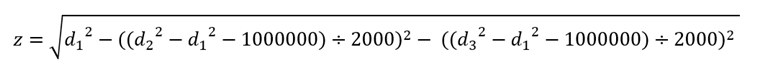 x = (d2 2 – d1 2 -10000000)÷2000